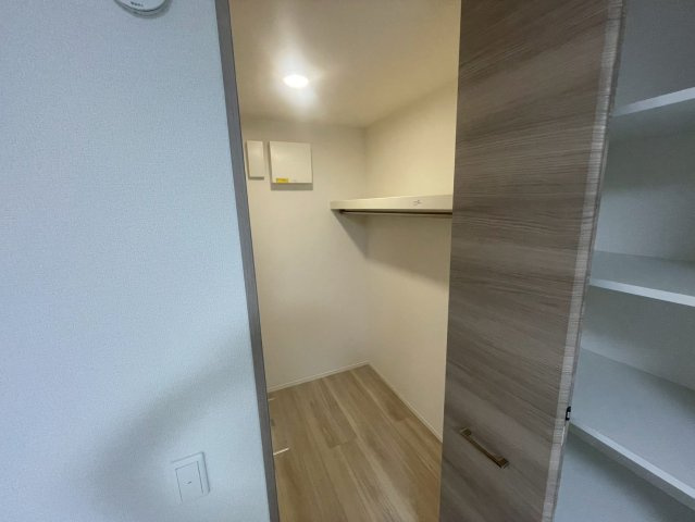 エルフォルク新神戸の住戸には、ウォークインクローゼット(WIC)が設けられており、収納力と使い勝手が高い点が魅力です。ウォークインクローゼットは洋室の一角に配置され、衣類だけでなく季節物のコートやバッグ、スーツケースなどの大きめアイテムもまとめて収納しやすい広さが確保されています。単なるクローゼットよりも奥行きがあるため、ハンガー収納と棚収納を組み合わせて整理整頓がしやすく、日常の服選びや身支度が効率的に進みやすい設計です。また、ウォークインタイプの利点として、収納したい物を一目で把握しやすい「見える収納」になりがちな点が挙げられます。これにより「どこに何をしまったか分からない」というストレスが軽減され、衣替えやアクセサリーの出し入れもスムーズです。棚やハンガーパイプを工夫すれば、靴や小物類まで機能的に役立てられます。さらに、ウォークインクローゼットが独立した収納スペースとして部屋内に存在することで、洋室や居住スペースをすっきり保てるメリットもあります。おかげで生活空間に余裕が生まれ、快適な暮らしにつながる点も住みやすさに寄与しています。総じて、エルフォルク新神戸のウォークインクローゼットは、収納力・整理整頓のしやすさ・生活動線の良さが揃った実用的な設備です。
