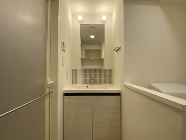 Fiel神戸本山の洗面所は、毎日の身支度や衛生管理を快適にサポートする機能性と使い勝手の良さが特徴です。スペースは効率的に設計されており、朝の忙しい時間でもスムーズに身支度ができるレイアウトになっています。洗面化粧台は鏡付きで、洗顔や歯磨きはもちろん、メイクやヘアセットなどの細かな作業もしやすい仕様です。洗面ボウルは適度な深さがあり、はね返りが少なく掃除もしやすい素材で仕上げられているため、日々のお手入れが簡単です。また、洗面台下や鏡裏には収納スペースが用意されており、タオルや洗面用具、スキンケア用品などを整理整頓してしまうことができます。これにより、カウンターまわりをすっきりと保つことができ、清潔感ある空間を維持できます。洗面所には洗濯機置き場も設けられており、入浴や身支度と洗濯の動線が無駄なくつながるよう配慮されています。照明は十分な明るさが確保されているため、細かな身支度も視認性よく行えます。壁や床はシンプルな色調でまとめられており、清潔感ある落ち着いた空間を演出しているのも魅力です。さらに、換気にも配慮された設計となっているため、湿気やにおいがこもりにくく、いつでも快適に利用できます。Fiel神戸本山の洗面所は、日常の生活シーンを快適かつ効率的にしてくれる機能が充実した空間であり、毎日の暮らしに寄り添った使い勝手の良さが感じられます。