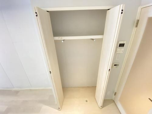 Ulysses芦屋の1LDKは、限られた空間でも収納力と使い勝手をしっかり確保した設計で、快適な暮らしを支える工夫が随所にあります。まず、玄関スペースには下足箱(シューズボックス)が備えられており、毎日の外出・帰宅で使う靴や小物をすっきりと整理できるため、玄関が散らからずに済むのが魅力です。これにより来客時の第一印象もすっきりとした空間を保つことができます。居室内部には、しっかりしたクローゼット収納を完備しており、衣類やバッグ、季節のアイテムなどをまとめて収納できます。クローゼットは奥行きと高さが確保されているため、ハンガー収納だけでなく、ボックスや仕切りを使うことで効率的な整理整頓が可能です。洋服だけでなく、ブランケットやシーズン家電なども収納できる余裕があり、居住空間を広く使えます。