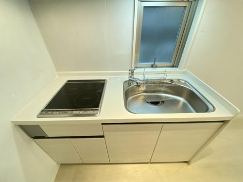 Ulysses芦屋の1LDKに設けられたキッチンスペースは、毎日の暮らしを快適で効率的にする居住空間の要としての魅力が詰まっています。まず基本設備として、システムキッチン+IHクッキングヒーターの二口コンロを備えており、日常の調理はもちろん、ちょっとした料理や自炊にも使いやすい仕様となっています。調理スペースはシンクやワークトップがコンパクトにまとまっていて、調理器具や食材の配置・管理がしやすく、作業の効率性を高めます。また、キッチンはLDKとつながるレイアウトのため、リビング・ダイニングとの一体感があり、食事準備中でも会話や作業の動線が遮られず、生活シーンに心地よい開放感をもたらします。コンパクトなスペースながらも必要な機能をしっかり備えているので、単身者はもちろん、二人暮らしでも快適に使える設計です。加えて、この物件は都市ガス仕様で給湯や調理が安定している点、室内全体の統一感あるデザインと調和している点も魅力のひとつです。清潔感のあるフローリングや居室とのカラーコーディネートが取れたキッチンは、生活空間全体の印象を引き締め、インテリアとしても映えるつくり。