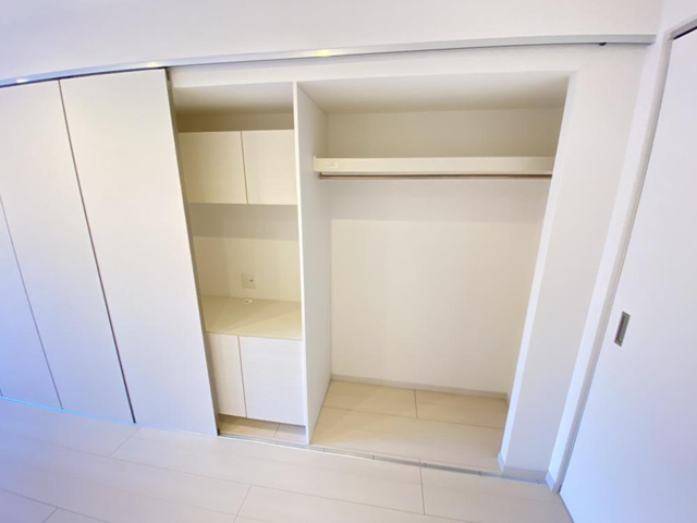 リブリ・シーサイドコート芦屋の収納スペースは、単身者向け1Kの住まいながら日々の生活をすっきり快適に保つための工夫がされています。まず、洋室内に設けられた大型クローゼットが基本で、衣類・バッグ・季節家電などを効率よく収納でき、荷物の多い方でも整理整頓しやすい設計です。また、シューズボックス(下足入れ)も玄関付近に標準装備されており、靴を種類ごとに収納できるため玄関まわりをすっきり保てます。靴箱上部や隣接スペースには小物や傘立てを置く余裕もあり、実用性が高い収納環境になっています。1Kというコンパクトな間取りながら、クローゼットは奥行きと高さを確保し、収納効率がよく設計されているのがポイントです。洋室の家具配置とも相性がよく、ベッド・デスク・テレビ台などを置いても動線を妨げない配置がしやすいのもメリットです。必要に応じて収納用ラックやシェルフを追加しても圧迫感が出にくい間取りなので、自分仕様の収納レイアウトをつくることもできます。全体として、日常的に使う衣類・雑貨・シューズをきちんと整理できる収納力が確保されており、単身暮らしでも快適に生活空間を維持できる仕様です。