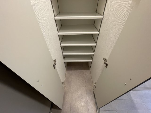 エステムコート神戸元町2リザーヴは築浅分譲マンションのため、居住空間の収納力にも配慮されたつくりになっているのが大きな特徴です。まず玄関付近には、家の顔となる重要な収納としてシューズインクローゼット(SIC)やシューズボックスが標準装備されている住戸プランが多く見られます。このタイプの収納は靴だけでなく、傘や季節用品、スニーカーやブーツなども整理して収納できる容量があり、玄関まわりを常にすっきり保つことができます。居室の収納については、ウォークインクローゼット(WIC)付きプランが設定されていることもあり、衣類やかばん、季節ごとの布団・毛布などの大きな荷物の出し入れが容易です。