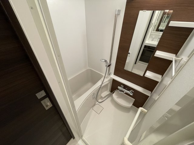 エステムコート神戸元町2リザーヴのバスルーム(浴室)は、築浅分譲賃貸マンションならではの快適性・機能性・清潔感のある水回り空間として設計されています。単身〜カップル向けの住戸でも、居住者が日々の疲れをしっかりリフレッシュできるよう、一般的な賃貸物件よりも充実した設備が備えられているのが大きな特徴です。まず基本設備として、バスルームには追い焚き機能が標準装備されている点が魅力です。追い焚き機能は一度溜めたお湯を保温・再加熱できるため、帰宅時間が遅くなりがちな日でも暖かいお風呂に入れる便利な機能で、単身者だけでなく二人暮らしでも水道光熱費を節約しつつ快適な入浴が可能です。