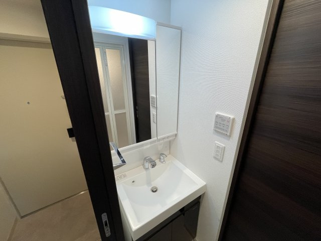 エステムコート神戸元町2リザーヴの洗面所(洗面スペース)は、単なる水回り設備にとどまらず、日々の生活動線をスムーズにし、快適な身支度・家事時間を実現するための機能性とデザイン性を兼ね備えた空間として設計されています。この物件は築浅分譲賃貸として人気が高く、洗面所もその一部として高い評価を受けているポイントです。まず洗面所のレイアウトとしては、独立型の洗面化粧台が設置されている点が大きな特徴です。浴室やトイレとは明確に分けられた独立スペースとなっているため、家族や同居人がそれぞれ別の作業をしていても干渉しにくく、忙しい朝の身支度や帰宅後のケアがスムーズになります。