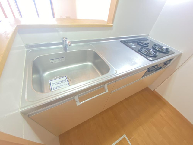 「グレース芦屋」のキッチンはLDKスペースの一角に設けられたカウンターキッチン仕様で、居住空間との一体感を保ちながら料理が楽しめるレイアウトです。実際の間取り例では、LDKと一続きになったスペースにガスコンロ(2口)が設置可能なキッチンが配置されており、給湯・ガスコンロ対応・都市ガス仕様で日常の調理に対応できる設計です。調理スペースは比較的コンパクトながらも効率的に配置され、リビングにいる家族や友人と会話しながら料理をすることができます。また、収納棚やシンク下のスペースを活用すれば調理器具や食器類の整理もスムーズです。カウンター側にはダイニングテーブルやチェアを置くことで、料理と食事の動線が良くなる工夫も可能です。キッチン周辺は南向きの明るいLDKとつながっているため、自然光が入りやすく、料理中も快適な空間を保てる点が魅力です。シンプルで実用性の高い設備により、単身者やカップルの生活スタイルにもマッチしやすい設計となっています。