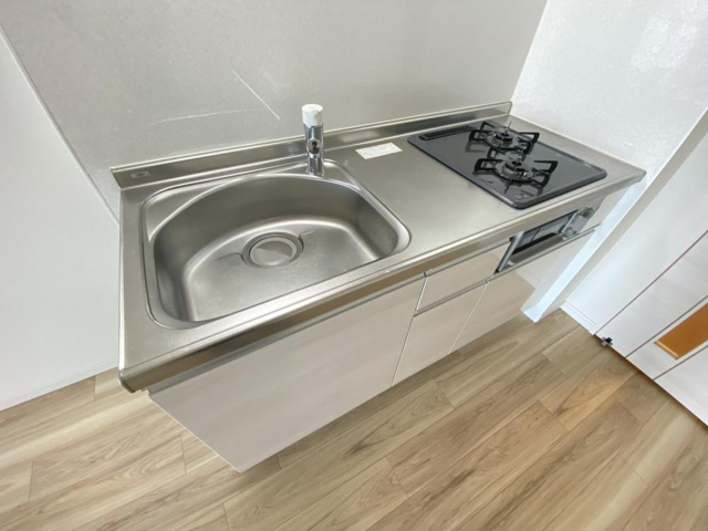 ピネータテラス武庫之荘のキッチンは、毎日の料理が楽しくなる機能性とデザイン性を兼ね備えた空間です。調理スペースをしっかり確保した設計で、食材の下ごしらえから盛り付けまでスムーズに行えるのが魅力。コンロまわりも使いやすく、同時調理がしやすいため、忙しい平日でも効率よく食事の準備が可能です。収納力にも優れており、上下のキャビネットには調理器具や食器をすっきりと整理でき、キッチン周りを常に清潔に保てます。シンプルで落ち着いた色合いのデザインは、室内全体との統一感があり、生活感を抑えたスタイリッシュな印象を演出。リビングに面した配置のため、料理をしながら会話やテレビを楽しめる点も嬉しいポイントです。換気もしっかりと考慮されており、においがこもりにくく快適。自炊派の方はもちろん、これから料理を始めたい方にも使いやすいキッチンで、日々の暮らしをより豊かにしてくれます。