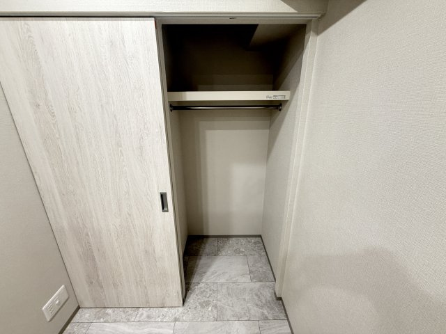 ネクストステージ神戸元町の各住戸には、居室にクローゼット(収納スペース)が備わっており、日々の暮らしをすっきり整理できる設計になっています。洋室には衣類やバッグ、季節物のコートなどを掛けて収納できるクローゼットが標準装備されており、ハンガーパイプ付きで洋服をシワなく保管しやすい仕様です。さらに、物件によってはウォークインクローゼットのあるプランもあり、単に収納するだけでなく、奥行きのあるスペースを活かして靴やスーツケース、キャリーケースなどの大きめのアイテムも効率的に整理できます。衣類だけでなく、日用品や趣味のグッズをまとめて収納できるため、室内の生活スペースを広く使える点も魅力です。クローゼットは全居室フローリングと調和するデザインで、インテリア性にも配慮された造りです。扉は開閉しやすいスライド式または折れ戸タイプが採用されており、出し入れがスムーズで日常の使い勝手も良好です(住戸タイプ・号室によって仕様が異なる場合あり)。また、玄関付近にはシューズボックスや玄関収納も充実しており、靴や小物類の整理・保管にも便利。これらの収納設備により、居住空間を広く保ち、ホテルライクな暮らしや来客時にも整った印象を与えられます。総じてネクストステージ神戸元町のクローゼットは、機能性・収納力・使い勝手を兼ね備えた収納設備で、単身者やカップルの住まいでも快適な生活動線と整理整頓をサポートする仕様です。